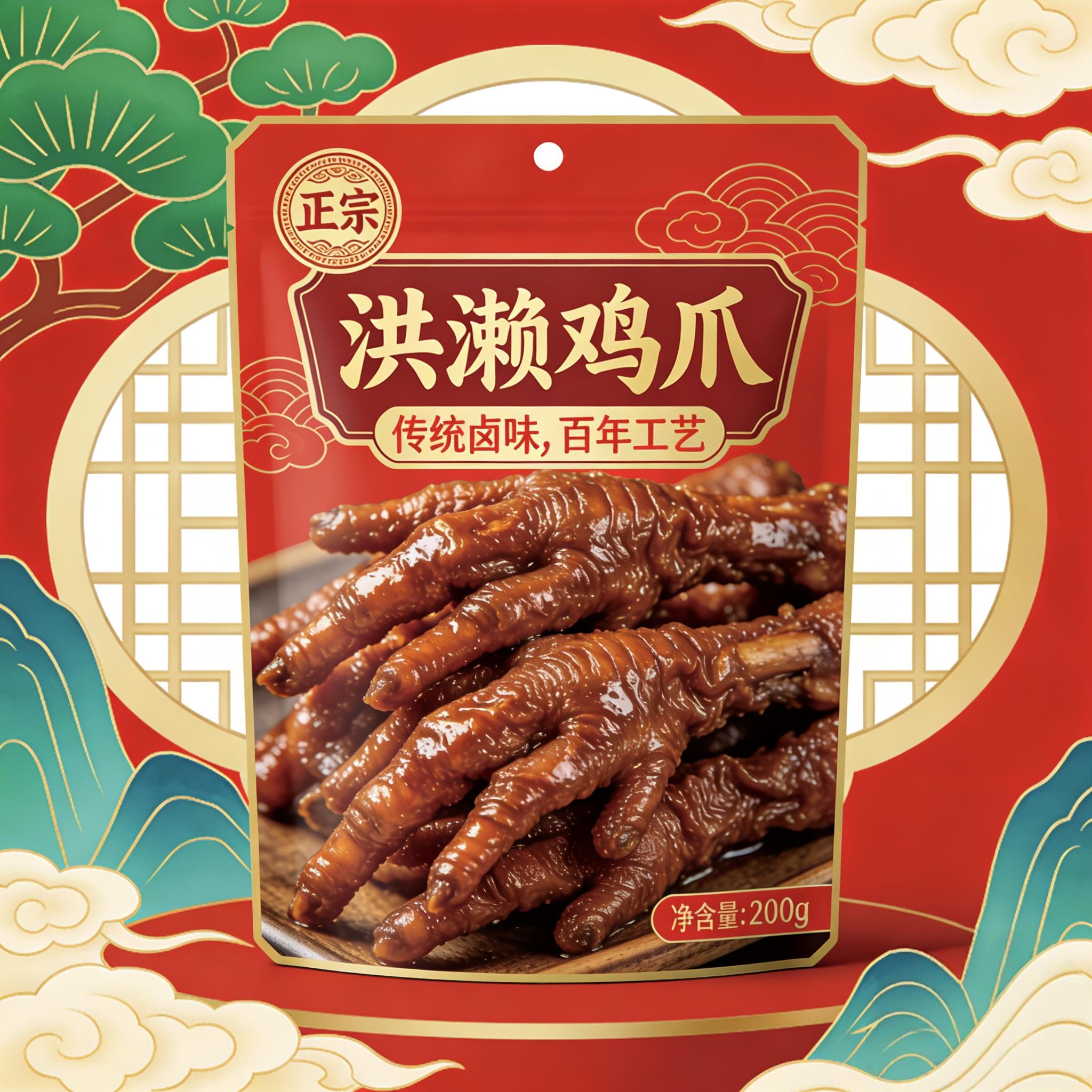 <br/>制作工艺<br/>选用A级鸡爪,要求个个白嫩、无黑茧子且个头均匀。鸡爪从冻库取出自然解冻并清洗后,放入含有八角、姜片、辣椒等20多种天然香熏料的秘制卤汁中卤制半小时左右,捞出后吹风晾干约10分钟。<br/>风味特色<br/>洪濑鸡爪质地饱满,色泽金黄,口感滑韧Q弹、有嚼劲,外皮Q弹带韧,肉质紧实不柴,卤香浓郁,微辣清香,醇香入骨,吃完后齿颊留香,回味无穷。<br/>产品规格与包装<br/>有真空包装和锁鲜包装等形式,真空包装有400克、500克等规格,还有独立小包装,方便携带和保存,保质期可达270天左右。 <br/>食用场景<br/>它是家居、旅行、佐酒的上佳小菜,也是送礼佳品,适合作为茶点,也可切碎拌入凉菜,或作为闽南特色卤面的浇头。