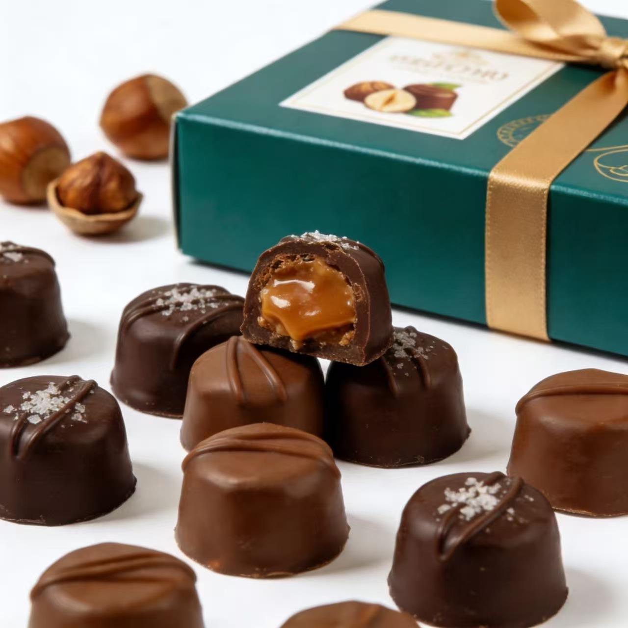 手工熬制法式焦糖酱,搭配深海海盐调合,融入纯可可脂巧克力中,甜腻的焦糖遇上提味的海盐,一口下去先是焦糖的焦香,再是巧克力的醇厚,最后海盐的咸鲜在舌尖散开,完美中和甜腻感。
