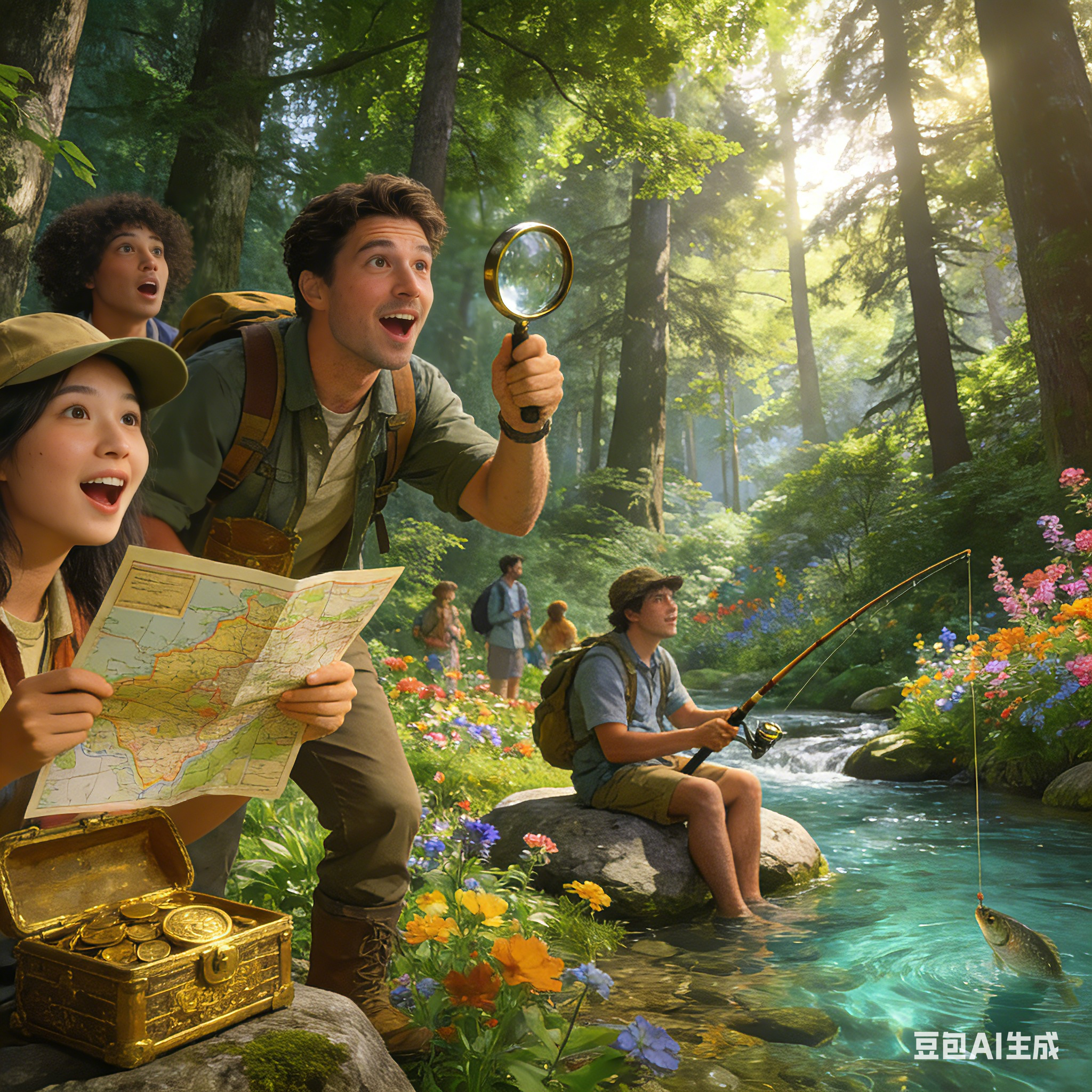 ✨ 套餐包含(适配 5-9 人)✅ 林间寻宝:任务卡 + 道具 + 文创礼品兑换权✅ 溪流垂钓:鱼竿鱼饵 + 垂钓区使用权 + 渔获加工 1 份✅ 配套服务:遮阳伞 + 休息区茶水 + 带队指引