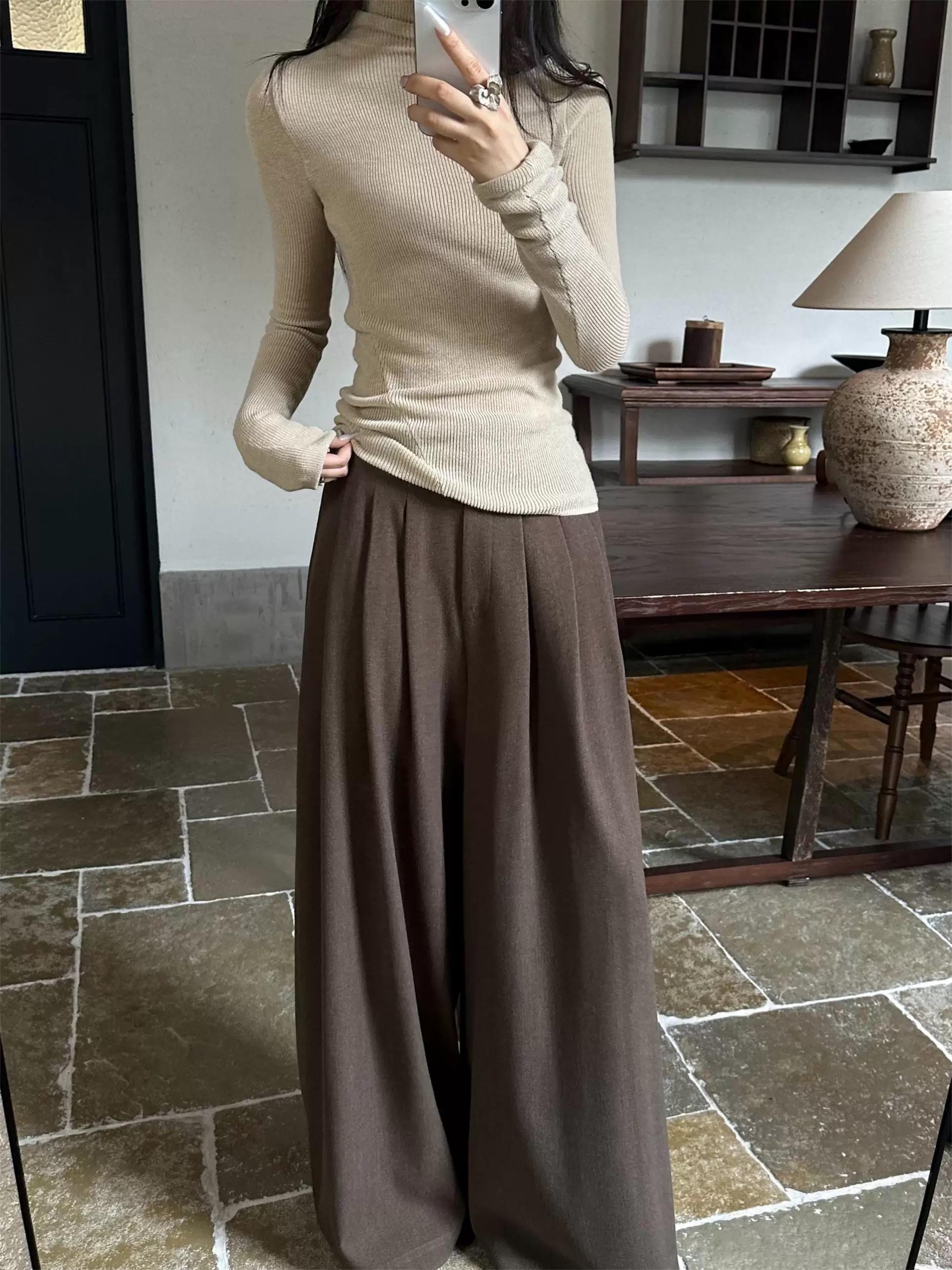 经典阔腿版型搭配侘寂风简约配色,垂坠感满分,不仅拉长腿部比例,更自带清冷高级感。无论是搭配卫衣、针织衫还是短外套,都能轻松穿出随性不费力的秋日氛围感,日常通勤、周末出游皆可穿。