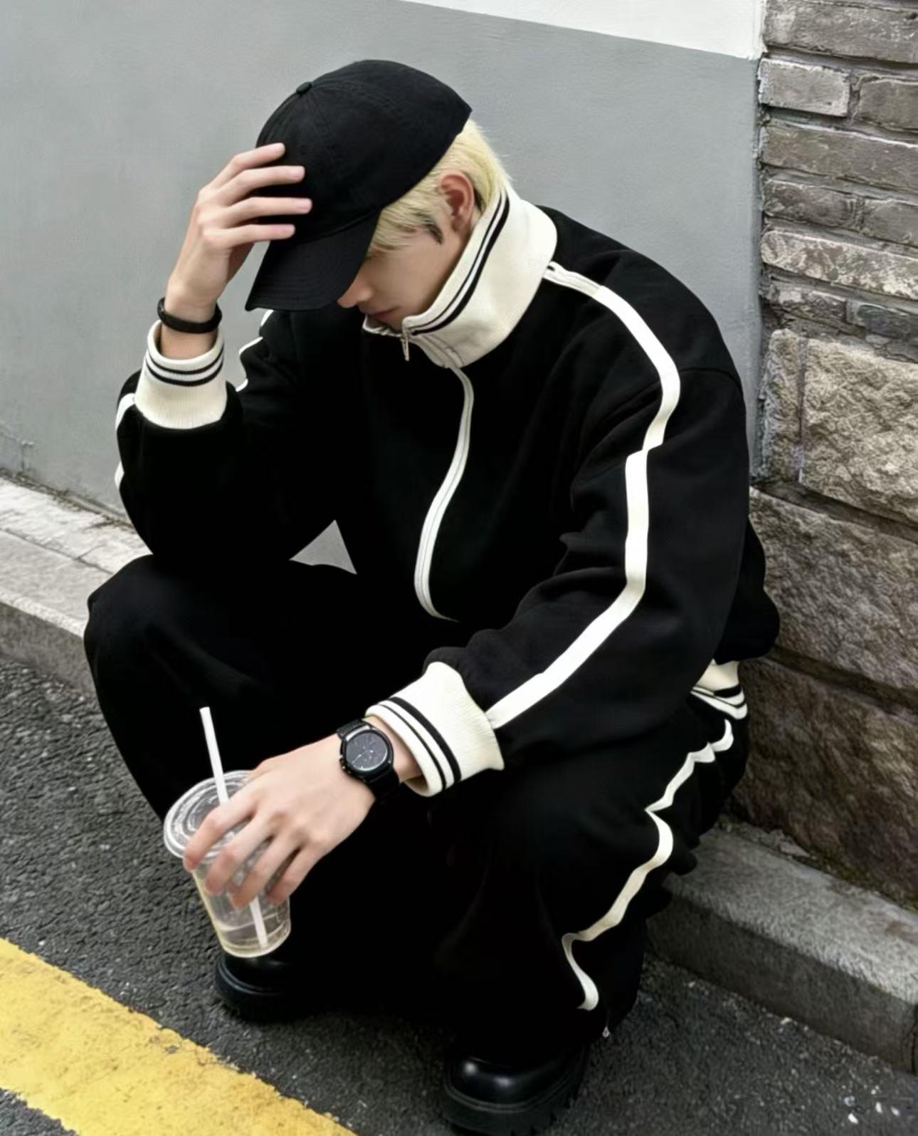 APEXUS男士撞色立领夹克休闲套装
