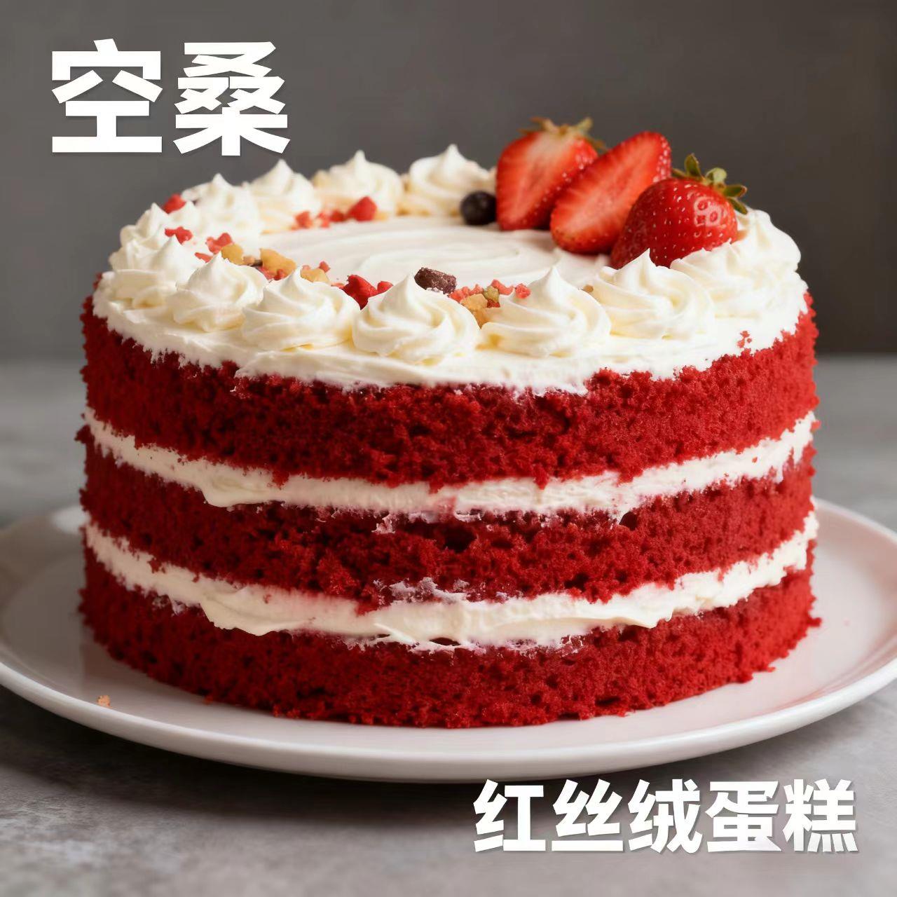 空桑经典红丝绒奶油蛋糕,采用进口红丝绒预拌粉制作蛋糕胚,搭配动物淡奶油与新鲜草莓果饰,三层松软红丝绒胚体夹着绵密奶油,口感轻盈不腻,红丝绒独特的微甜风味与草莓果香交融。6寸规格适合2-4人分享,是生日庆祝、下午茶聚会的优选甜点,全程冷链配送保证新鲜。