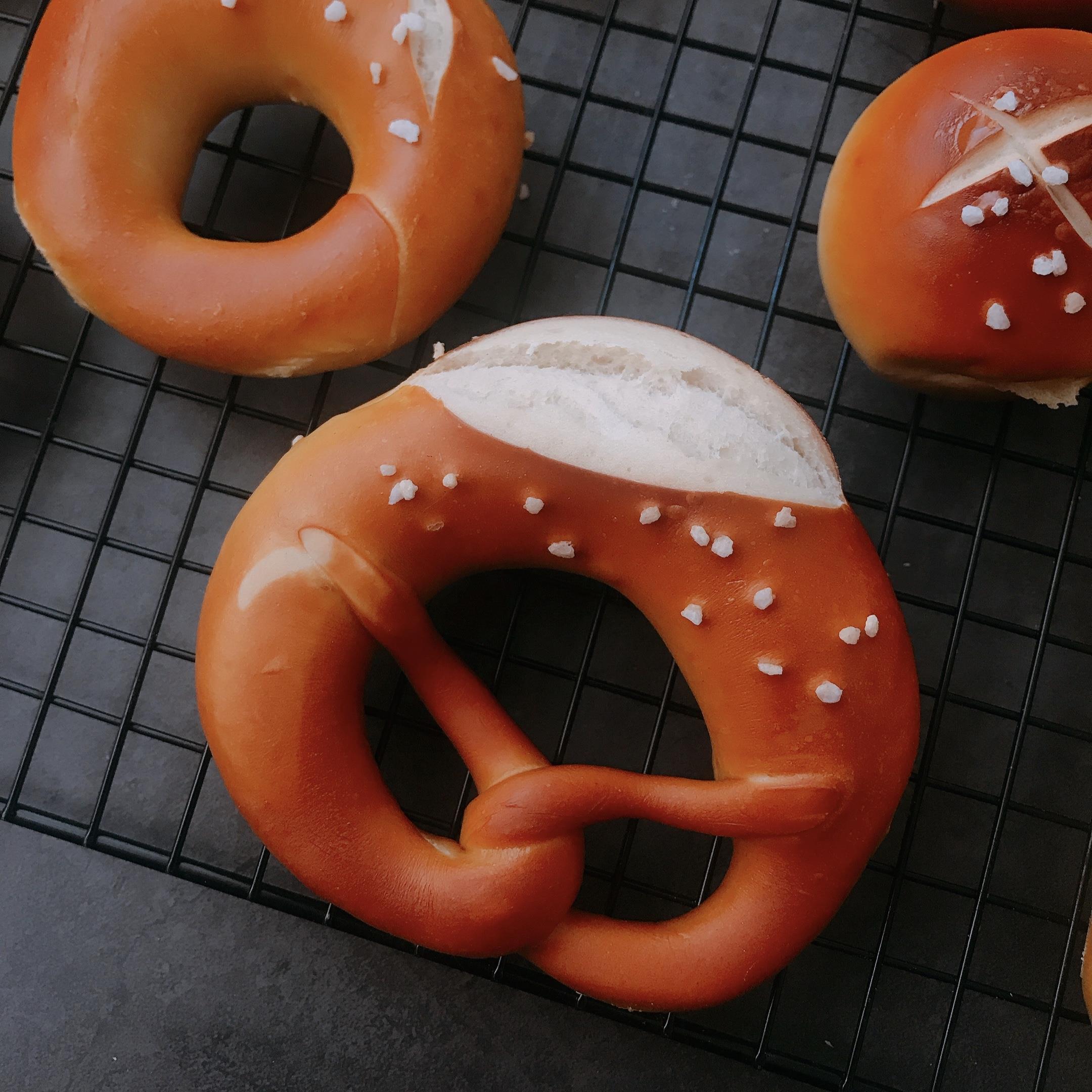 碱水面包是现在都市食肉族亚健康人群的理想食物,轻发酵碱性食物,无糖,可选择少量或无总统黄油,口感略松软但不失嚼劲。