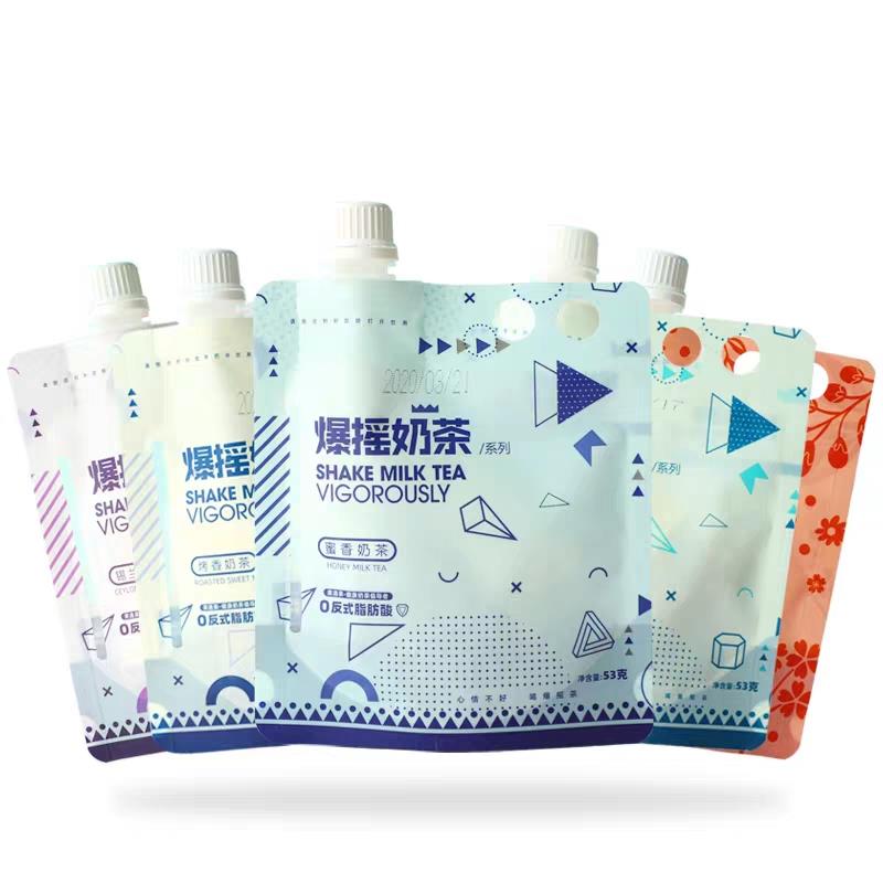 蜜香奶茶,锡兰奶茶,烤箱奶茶,茉莉奶绿。阿萨姆奶茶,多种口味,多样选择。网红爆摇奶茶高颜值包装,加水充分摇匀,美味便携,即冲即饮,零反式脂肪酸磷脂肪原叶泡制,奶与茶的黄金比例选择茉莉绿茶
