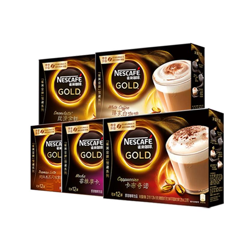 雀巢金牌馆藏咖啡 卡布奇诺白咖啡丝滑拿铁摩卡提拉米苏12条*5盒