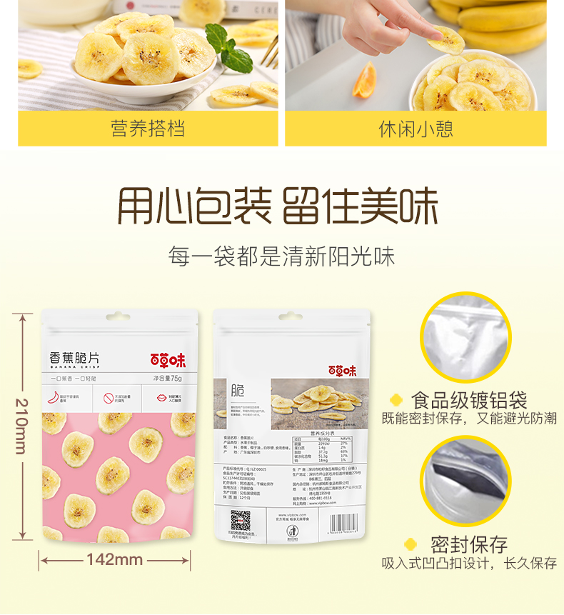 • 商品名称:香蕉脆片75g/袋水果干芭蕉...
