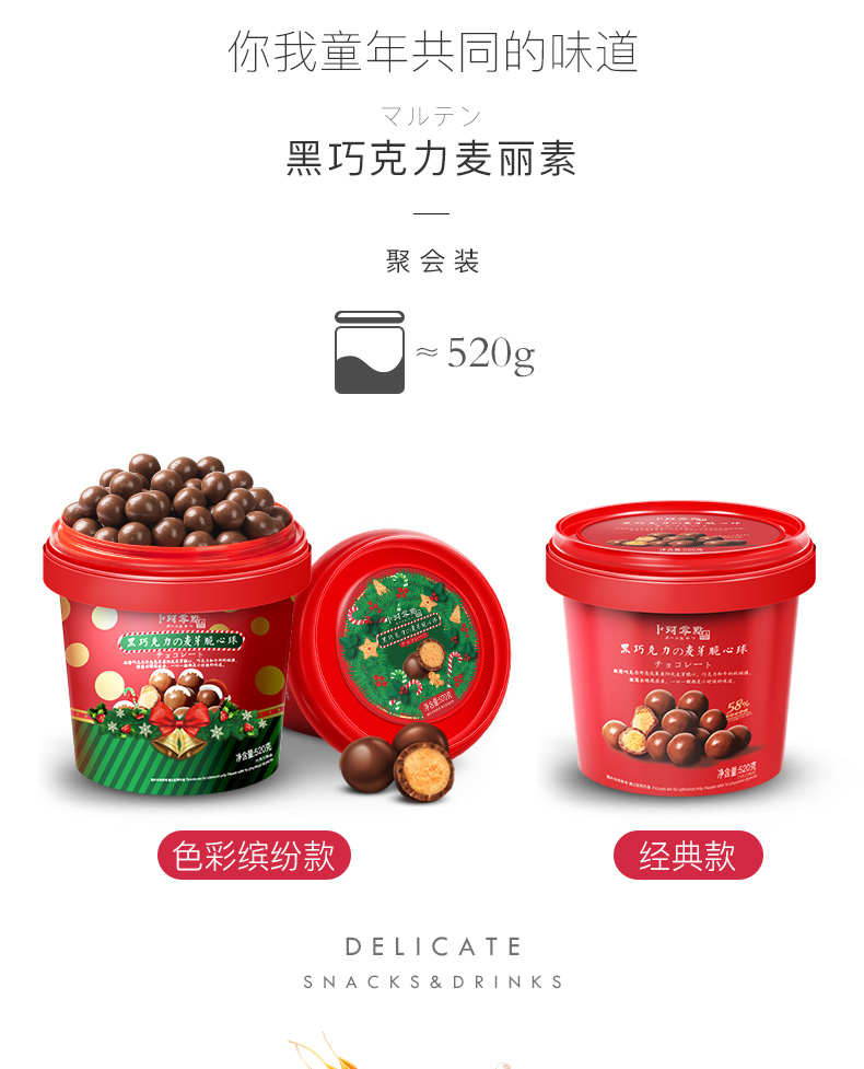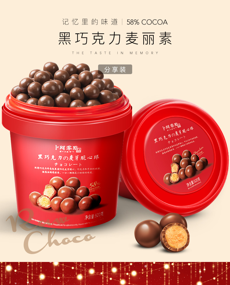 • 商品名称:卜珂麦丽素桶装怀旧黑巧克...