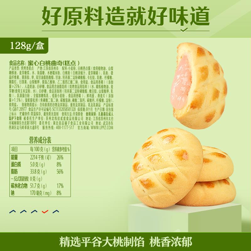 新品【良品铺子蜜心白桃曲奇128gx2盒】日式夹心饼干零食小吃