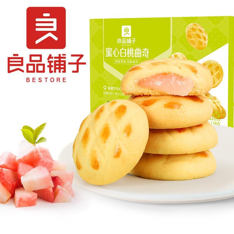 零食特产、酒水饮料 > 饼干 > 新品【良品铺子蜜心白桃曲奇128gx2盒】日式夹心饼干零食小吃