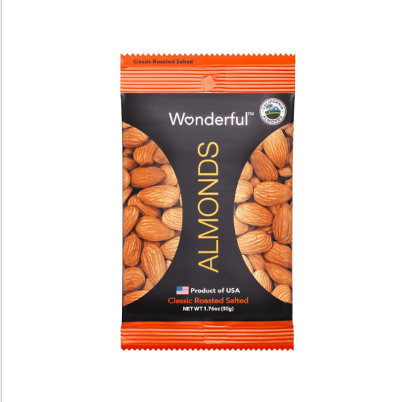 零食特产、酒水饮料 > 坚果炒货 > 美国进口wonderful万多福经典盐焗年货无壳巴旦木大杏仁小包装50g