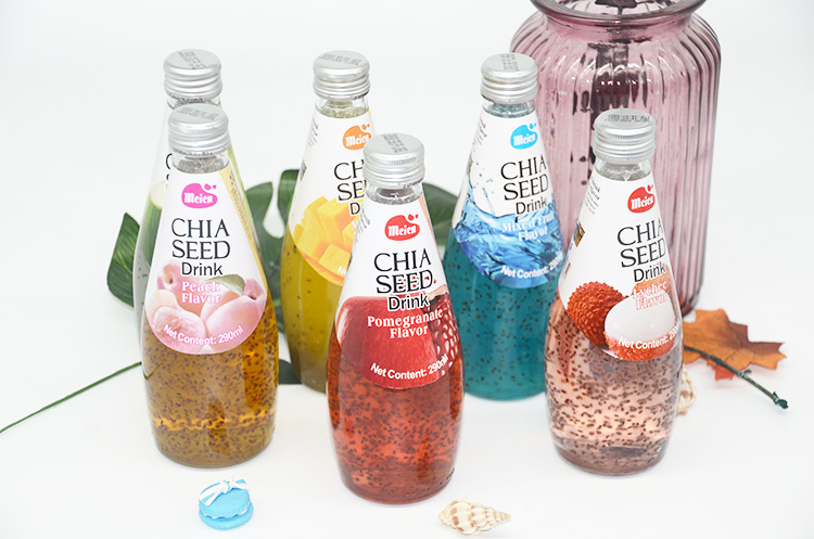零食特产、酒水饮料 > 果蔬饮品 > 泰国进口美恩奇亚籽饮料290ml*6瓶装芒果荔枝椰子白桃葡萄水果汁