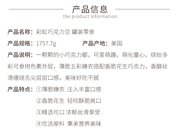• 商品名称:M&M豆 玛氏巧克力豆彩虹豆...