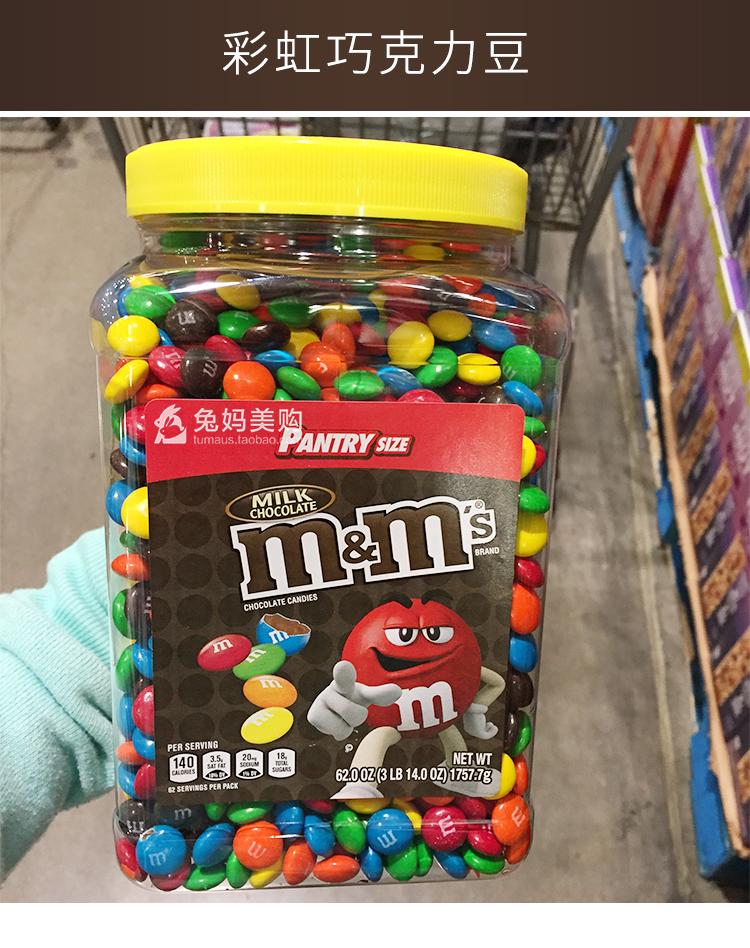 零食特产、酒水饮料 > 糖果 > M&M豆 玛氏巧克力豆彩虹豆 罐装零食 1757.7g
