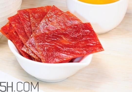 猪肉脯是猪肉经腌制、烘烤的片状肉制品。猪肉脯是一种食用方便、制作考究、美味可口、耐贮藏和便于运输的中式传统风味肉制品。猪肉脯色泽呈鲜艳的棕红色,具有口感丰富,咸中微甜,芳香浓郁,余味无穷。猪肉脯生产过程比较复杂而严格,选用的是新鲜猪肉后腿部分,剔去皮、膘、筋骨,取其整块纯瘦肉为基本原料,剖成薄片。