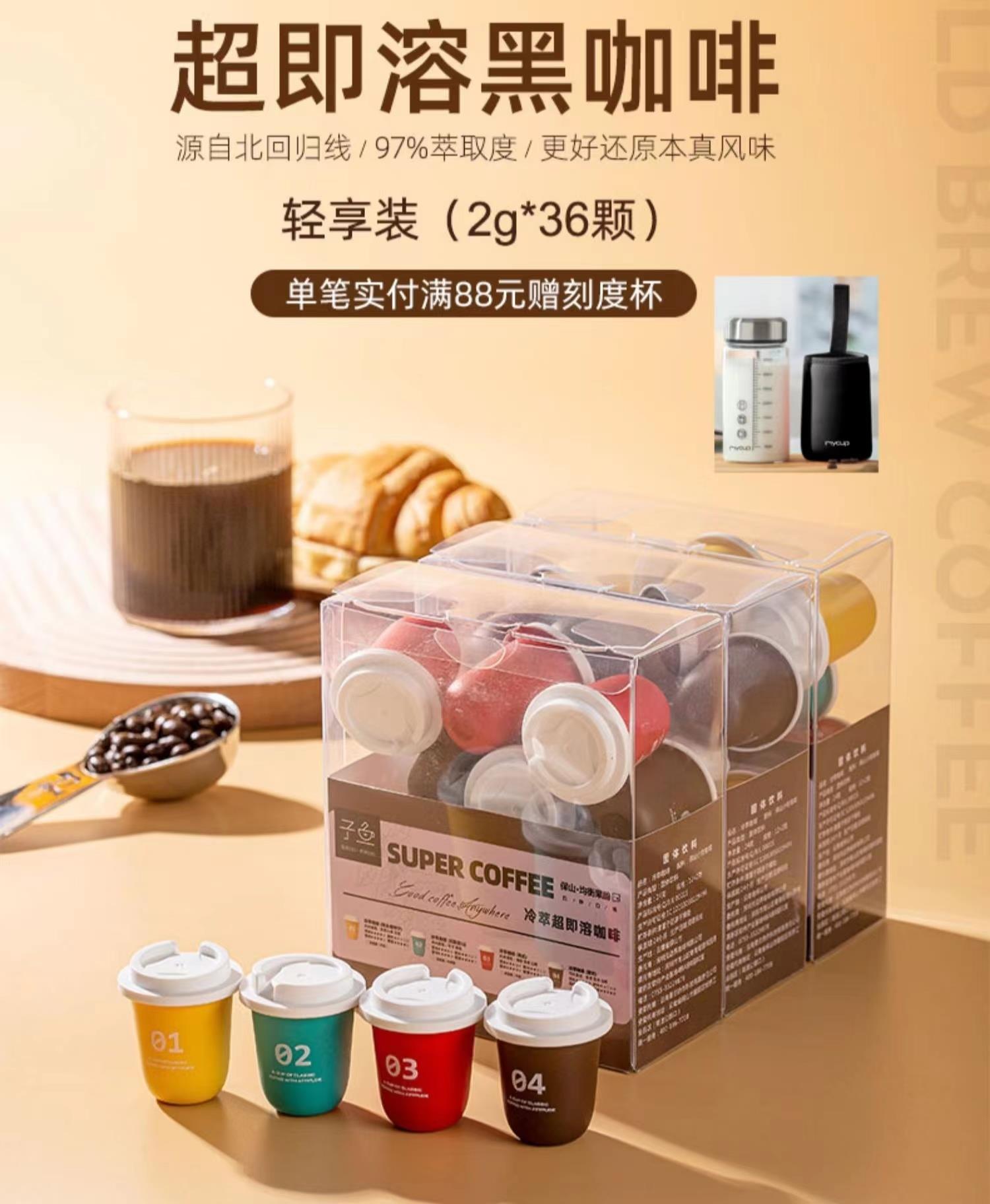 冲调方法:将一颗咖啡冻干倒入杯中,加入160ml水或牛奶,搅拌均匀即可饮用
