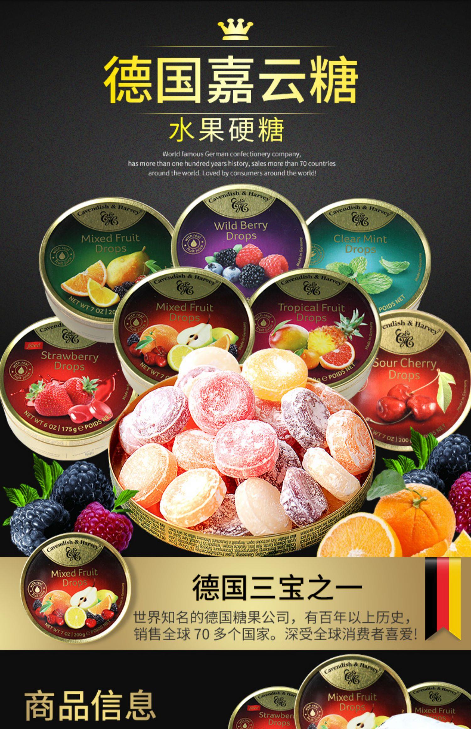 生产日期:2022年05月19日 至 2022年05月19日品牌:Cavendish&Harvey/嘉云(德国)系列:嘉云水果糖