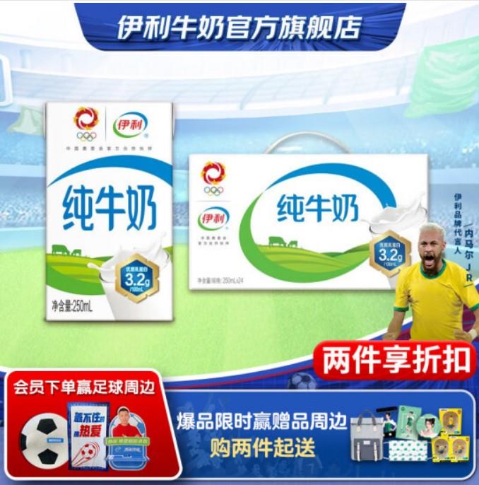零食特产、酒水饮料 > 牛奶 > 伊利 纯牛奶250ml*24盒/箱 礼盒装 全脂营养 早餐搭档 优质乳蛋白
