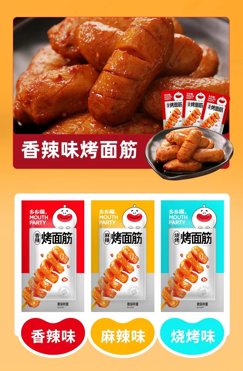 烤面筋是陕西关中地区传统特色小吃,具有香辣味,孜然味等口味,口感微麻微辣,口味适中,色泽红亮,色味俱全之特点,诱人食欲,特色突出。