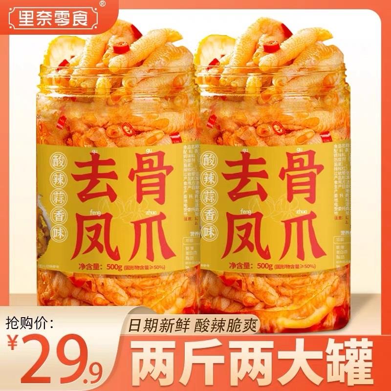 商品名称:酸辣无骨鸡爪去骨柠檬泡椒凤爪罐装网红小吃零食下酒菜休闲食品 蒜香微辣-2斤装