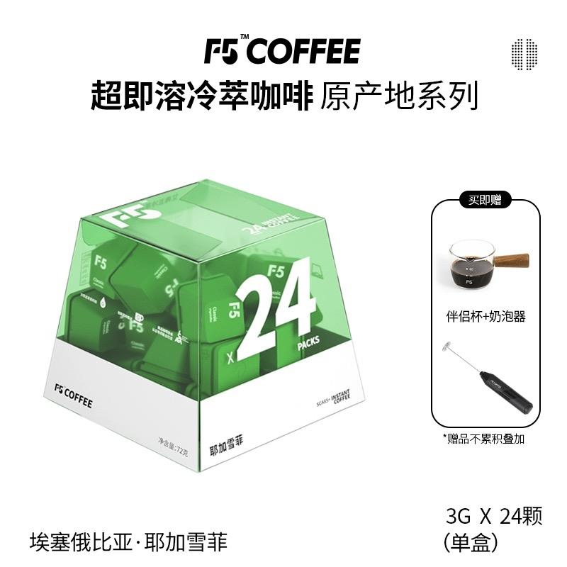 F5冷萃超即溶咖啡耶加雪菲冷萃冻干咖啡粉美式纯黑咖啡24颗*3g