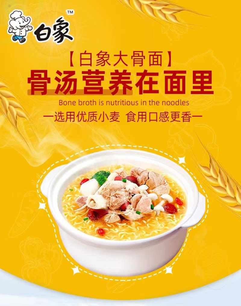 大骨汤面系列:这是白象最经典的产品系列,包括红烧牛肉面、原汁猪骨面、香辣猪骨面等口味。面条采用优质小麦面饼,口感柔韧爽滑。该系列的特色是搭配丰富蔬菜和精心熬制的大骨汤,汤鲜味美,营养价值相对较高。
