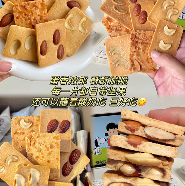 口感:口感酥脆,巴旦木带来香浓醇厚的坚果风味,椰片赋予清新的椰香,与饼干本身的酥脆质地完美融合,咬一口,多种口感在口中交织,令人回味无穷 。