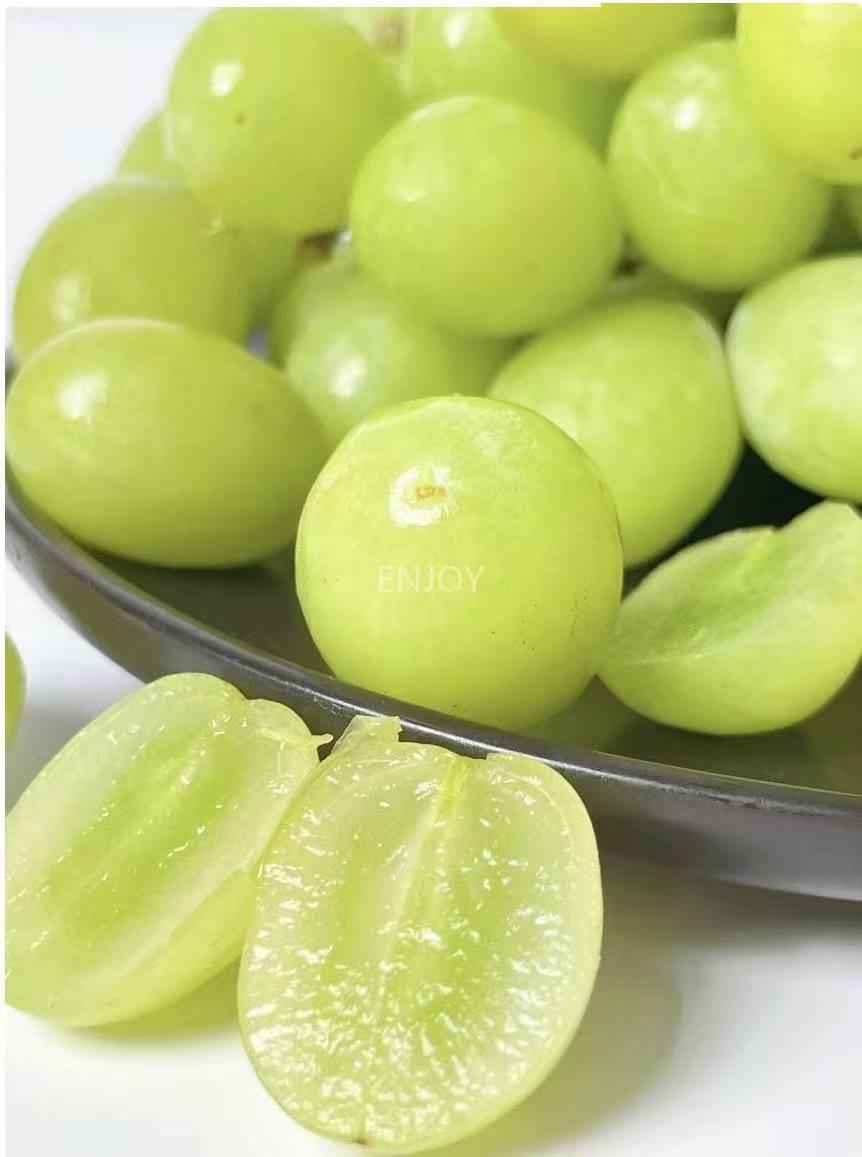 口感风味:智利青提通常果粒浑圆饱满,呈翡翠绿色,外皮有透亮果粉,口感爆汁脆爽,甜度在18-20°之间,部分品种带有荔枝尾韵或热带水果香气。