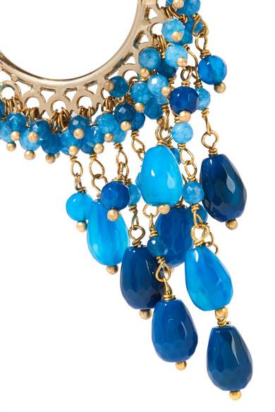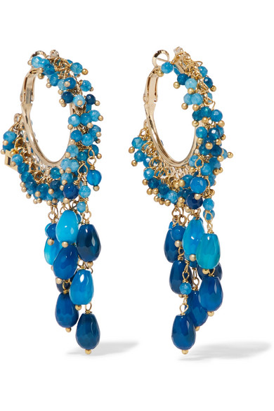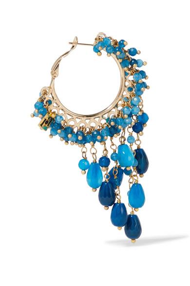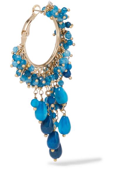 Rosantica 这款 “Pascoli” 耳环大小适中,尤能修饰脸型。单品采用金色黄铜由意大利工匠手工铸就,缀有海洋色彩琢面石英。不妨以一抹天蓝色眼线衬托其迷人色泽。