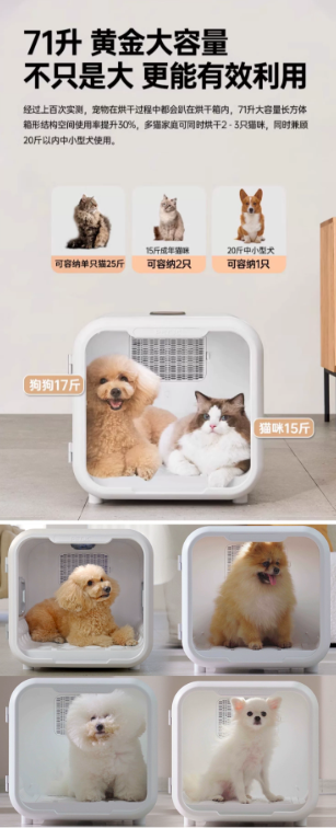 2、对于猫咪和狗狗首次使用烘干箱的时候,小主人最好在旁边陪着,处在毛孩子的视线范围之内。