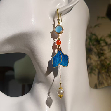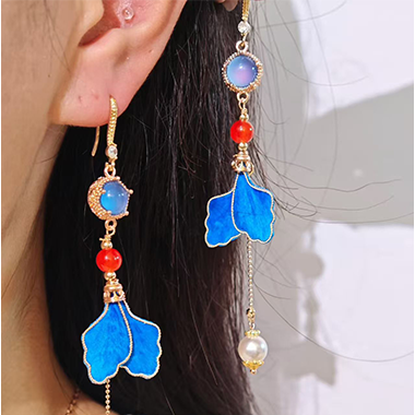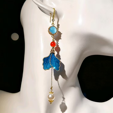 仿珐琅银杏叶搭配琉璃珠+珍珠流苏,国风淡雅款,适配汉服/日常裙装,温柔显气质。