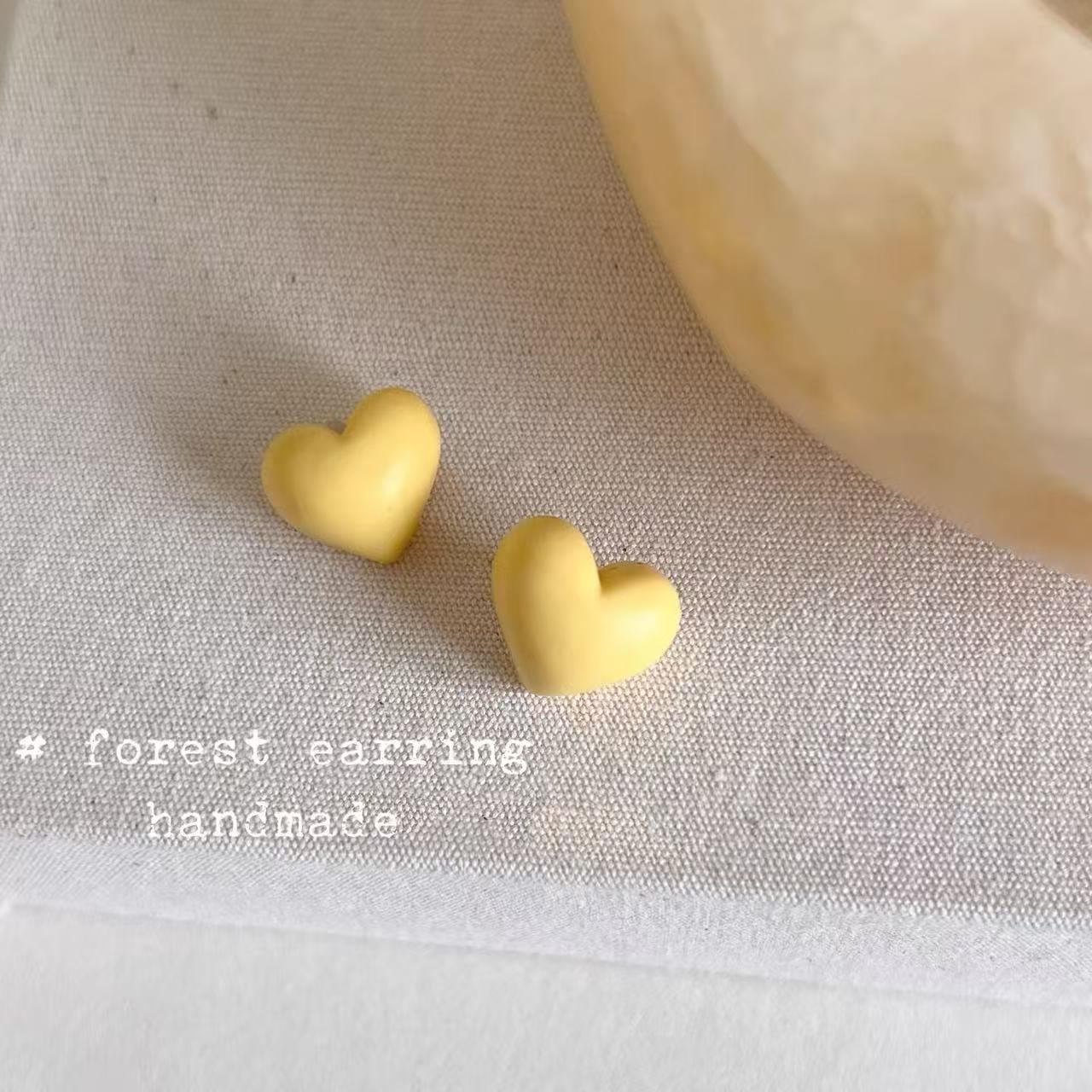 :油画爱心韩系甜美可爱银耳钉磨砂黄色小众高级感耳环女