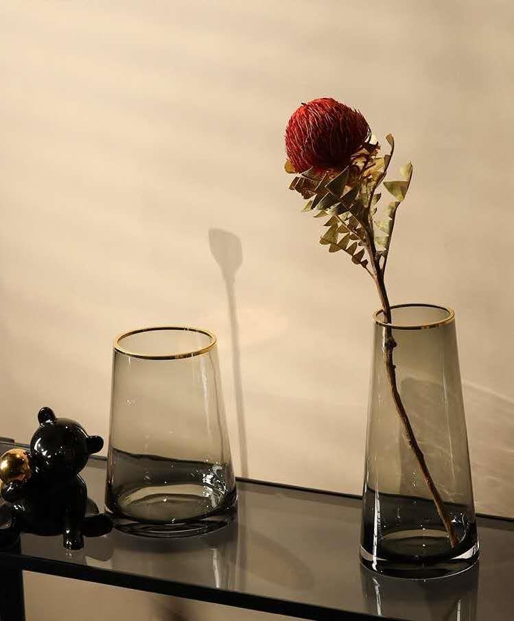 简约花瓶 玻璃搭配金边 低调奢华