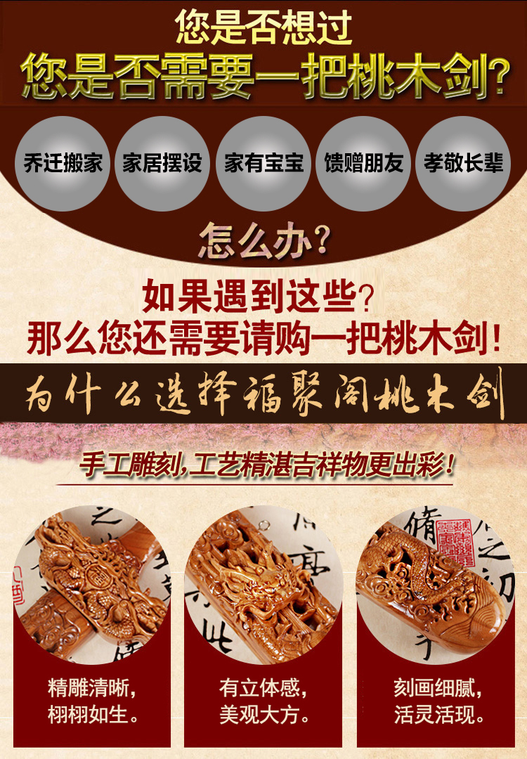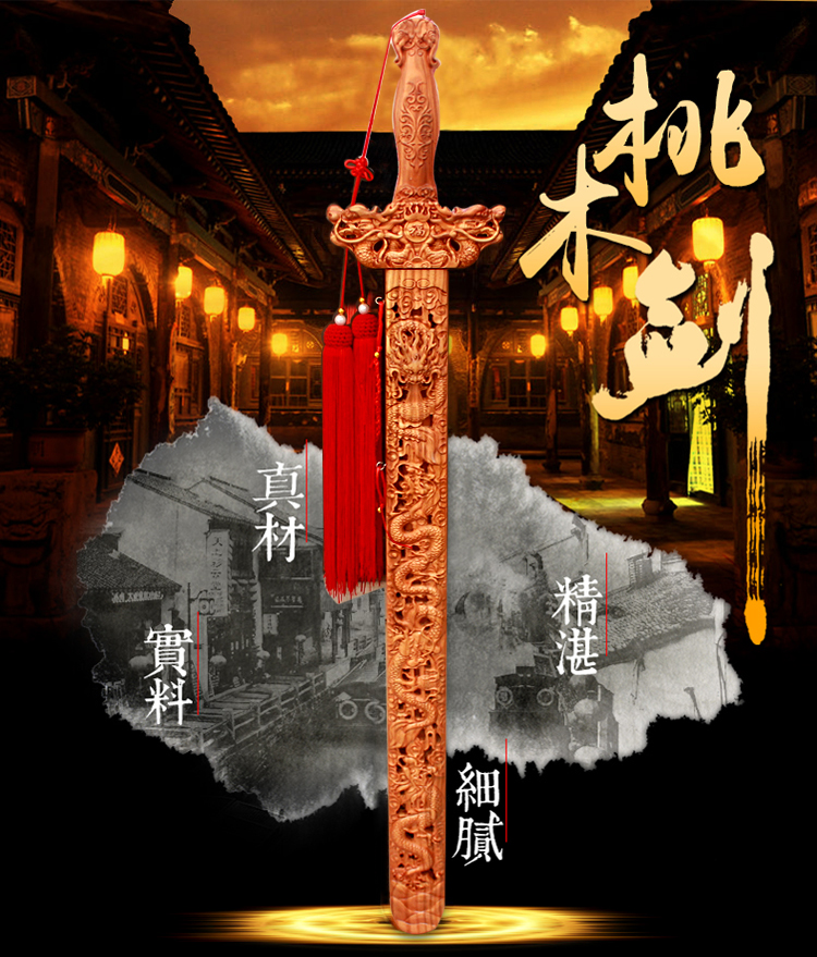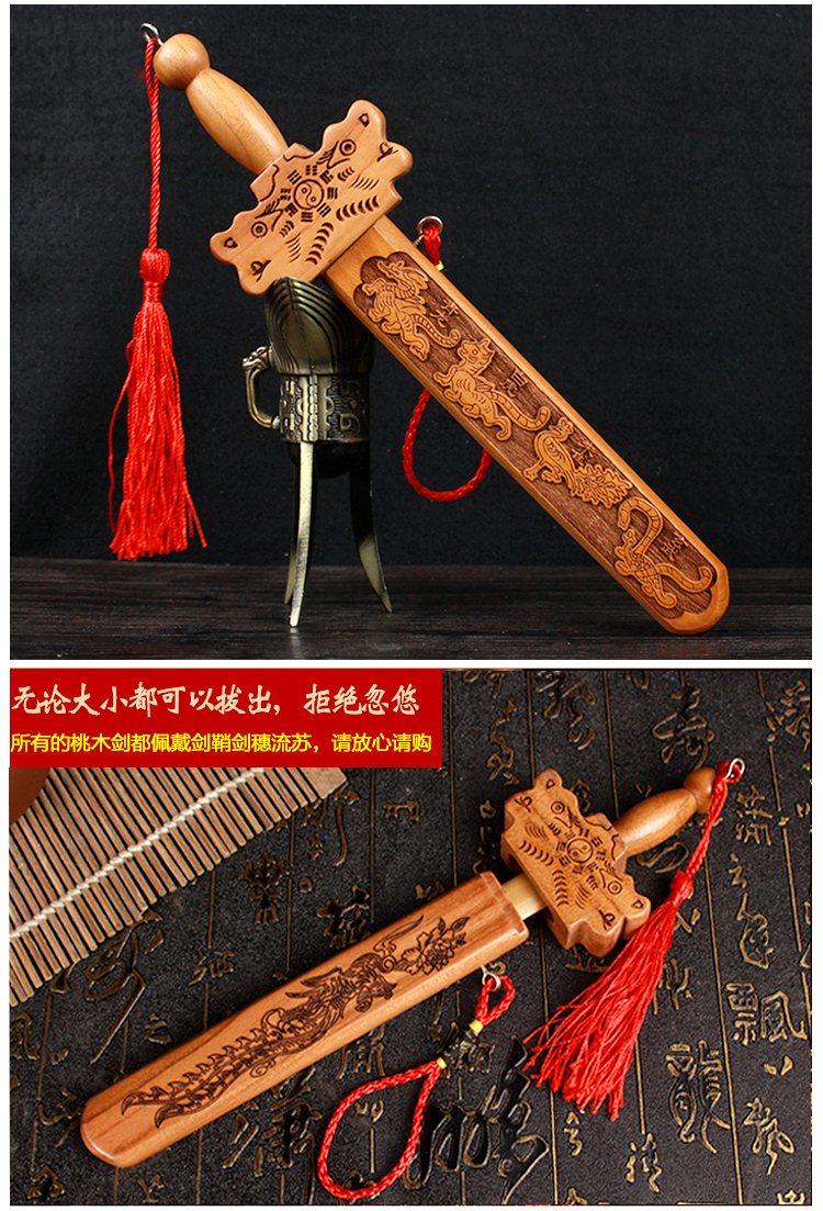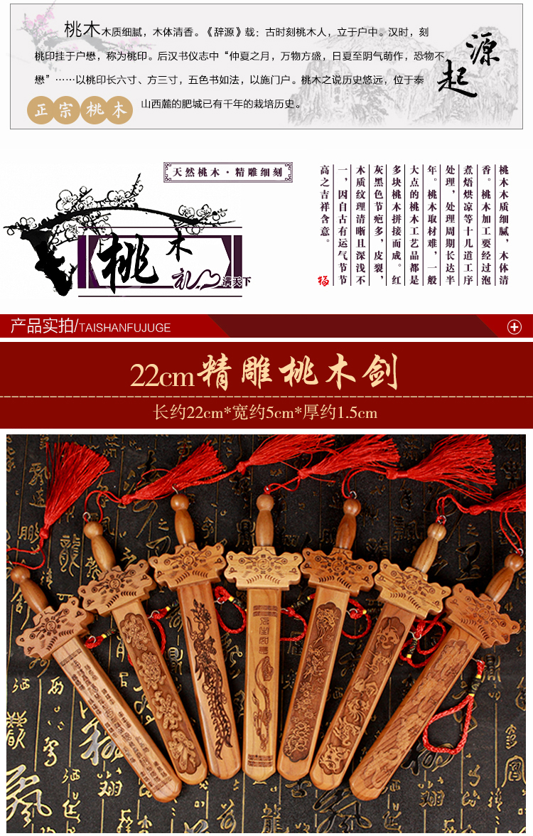 • 商品名称:开光肥城桃木剑镇宅辟邪挂...