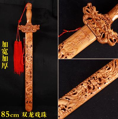 家居用品、厨卫清洁 > 装饰品 > 开光肥城桃木剑镇宅辟邪挂件道士木雕摆件小孩儿童随身客厅工艺品