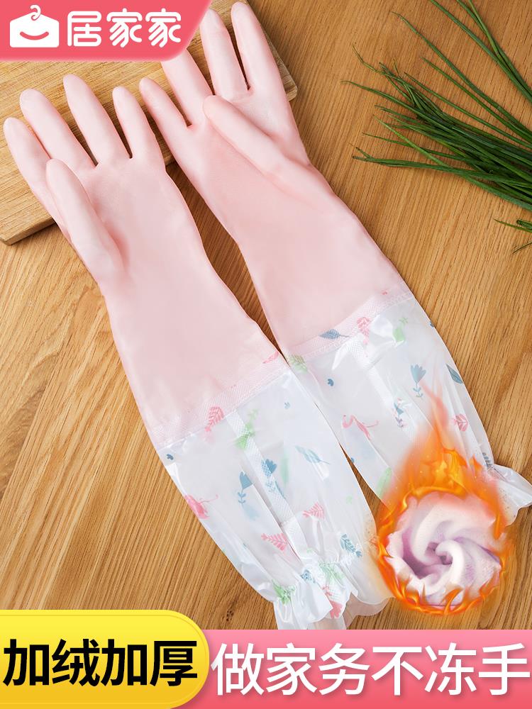 家居用品、厨卫清洁 > 厨具 > 加绒洗碗手套女家用家务厨房耐用防水橡胶乳胶洗衣服胶手套