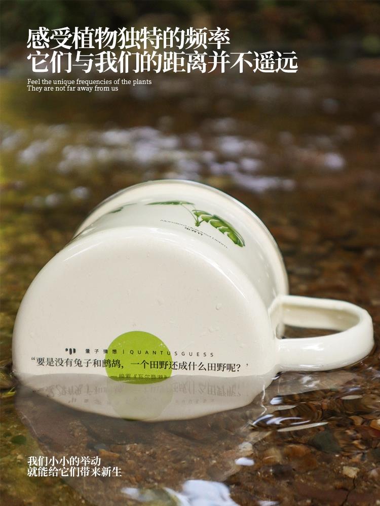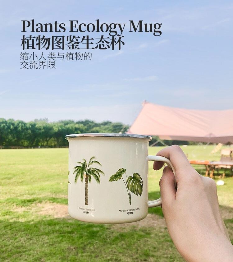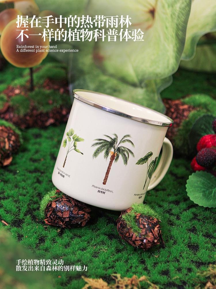 我们在杯子上手绘了热带雨林的植物(包含棕榈科4株和龟背竹)