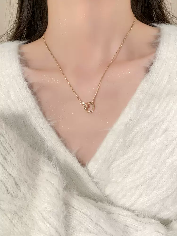 家居用品、厨卫清洁 > 装饰品 > 金色简约环扣项链2023新款爆款轻奢高级感锁骨链小众设计独特颈链