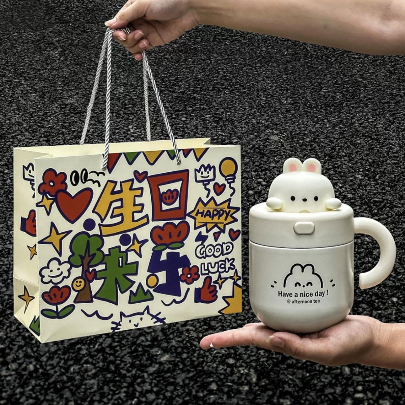 生日礼物女生兔子吸管保温杯可爱咖啡杯水杯送闺蜜创意小礼品
