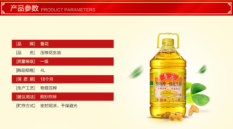 • 商品名称:鲁花5S一级花生油4L 物理压...