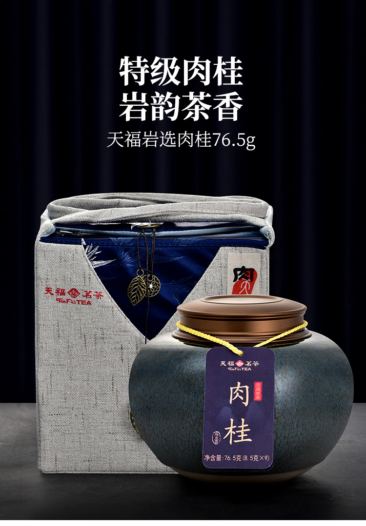 烹饪食材、果蔬生鲜 > 土特产 > 天福茗茶岩选肉桂 特级品鉴武夷山岩茶 精美礼盒装瓷罐76.5g
