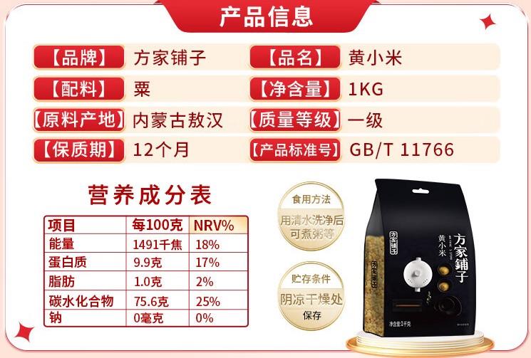 商品名称:方家铺子 黄小米 黄金苗小黄米小米粥月子米东北粗粮粥米伴侣始于1906