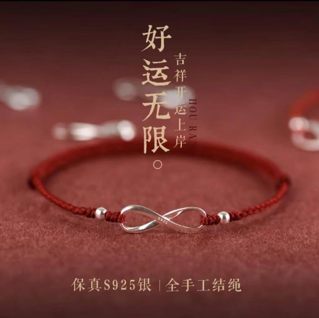 Material/材质:S925银 进口线绳 Color/颜色:红绳 酒红