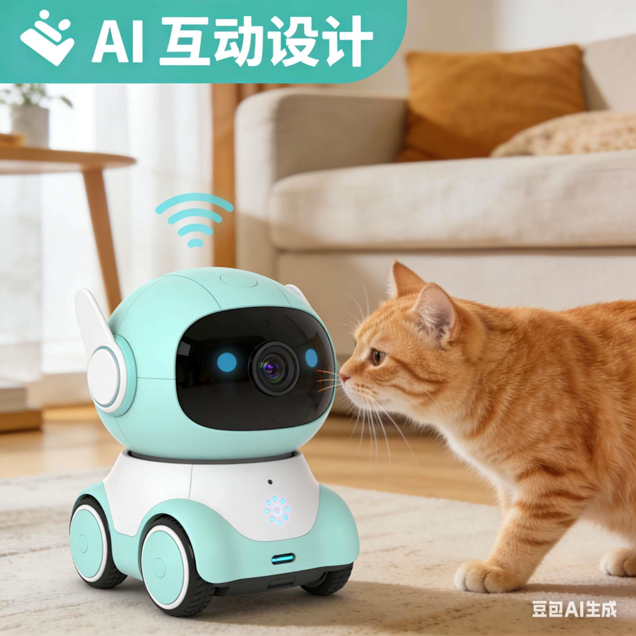 一个可移动的、带有摄像头的机器人,内置AI算法识别宠物情绪(如无聊、兴奋)。当宠物靠近时,会自动互动(滚动、发出声音),主人也可通过手机远程遥控,与宠物进行追逐游戏或投喂零食。