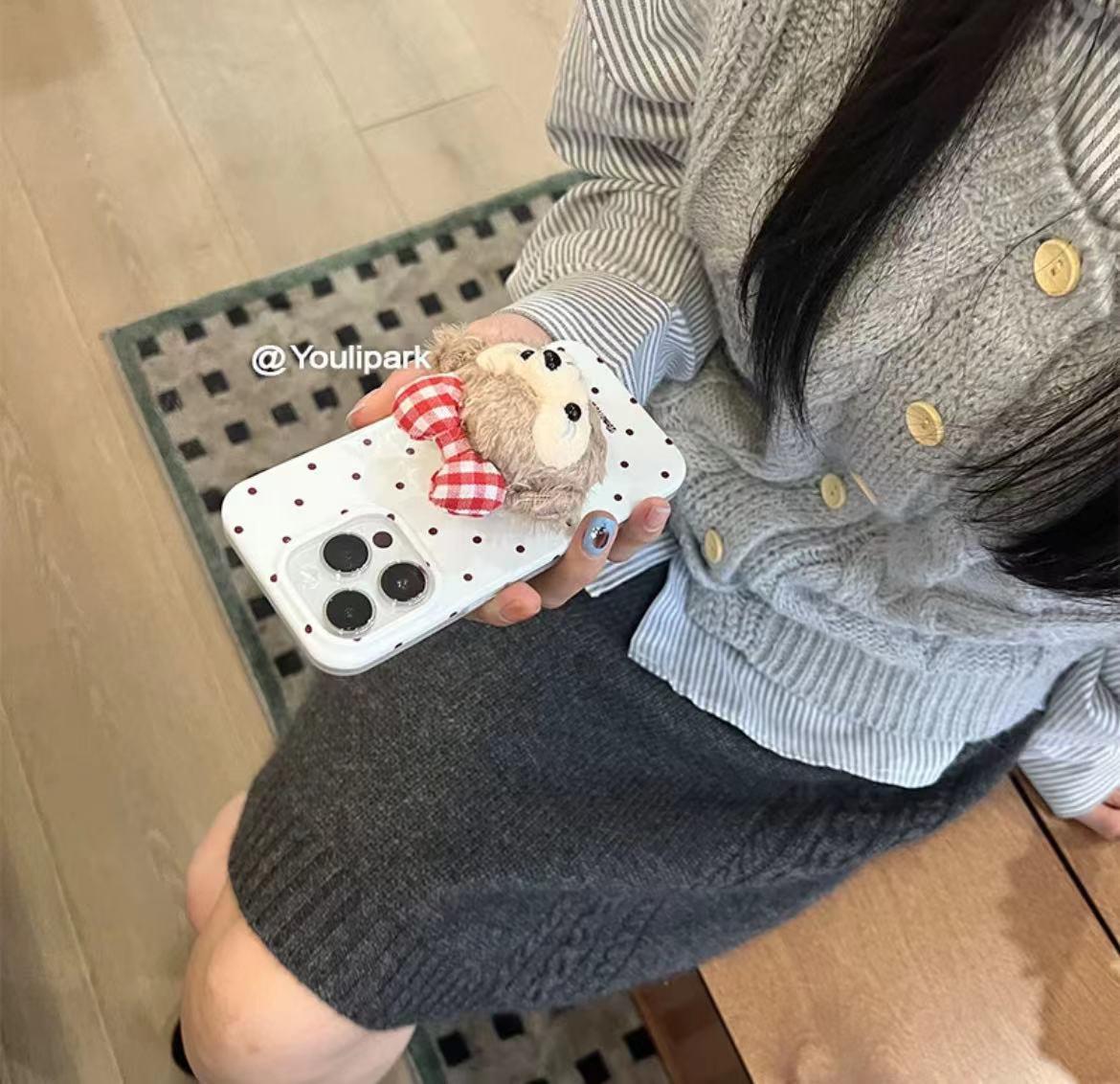 由里公园ins少女可爱毛绒小熊支架适用14苹果15ProMax手机壳iPhone13全包15新款12Pro软14Promax防摔保护套11
