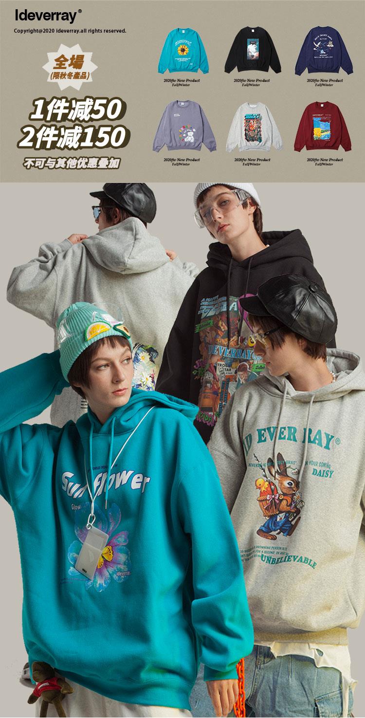 服饰箱包、运动户外 > 卫衣 > IDEVERRAY国潮卫衣男连帽潮牌2020新款秋冬款男士加绒加厚上衣潮