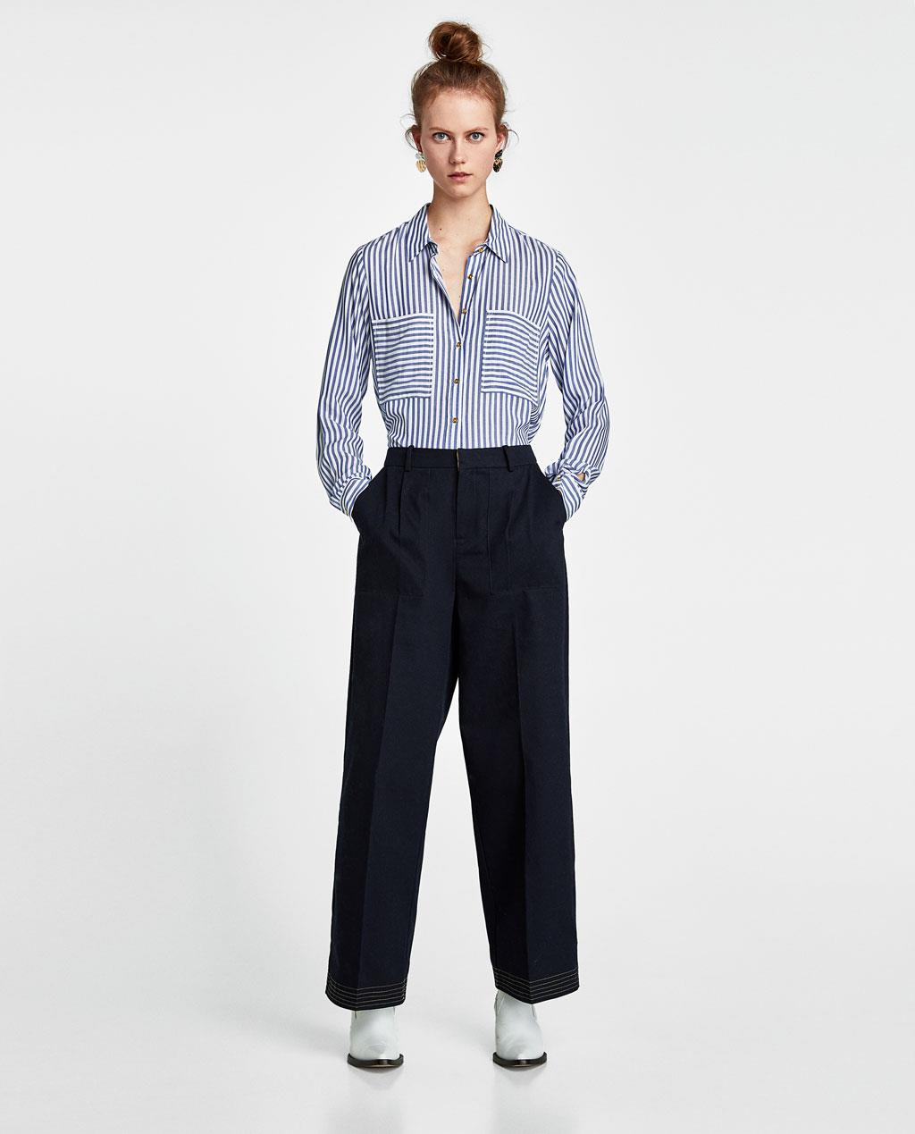 棕熊方鹿枝 女装 纽扣条纹衬衫 03510022044