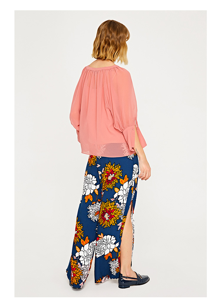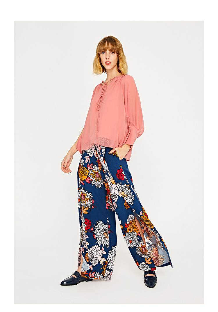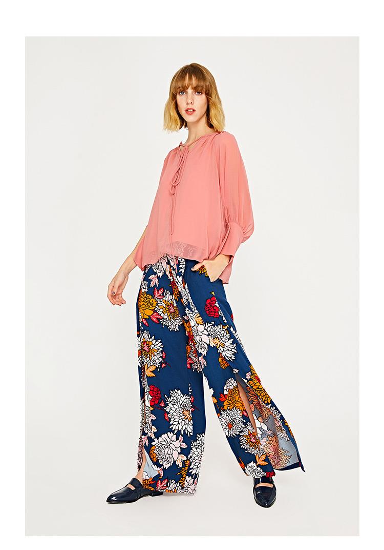 服饰箱包、运动户外 > 夹克 > 棕熊方鹿枝 女装薄纱透视拼接V领绑带套头衬衫WG29R2CE2000