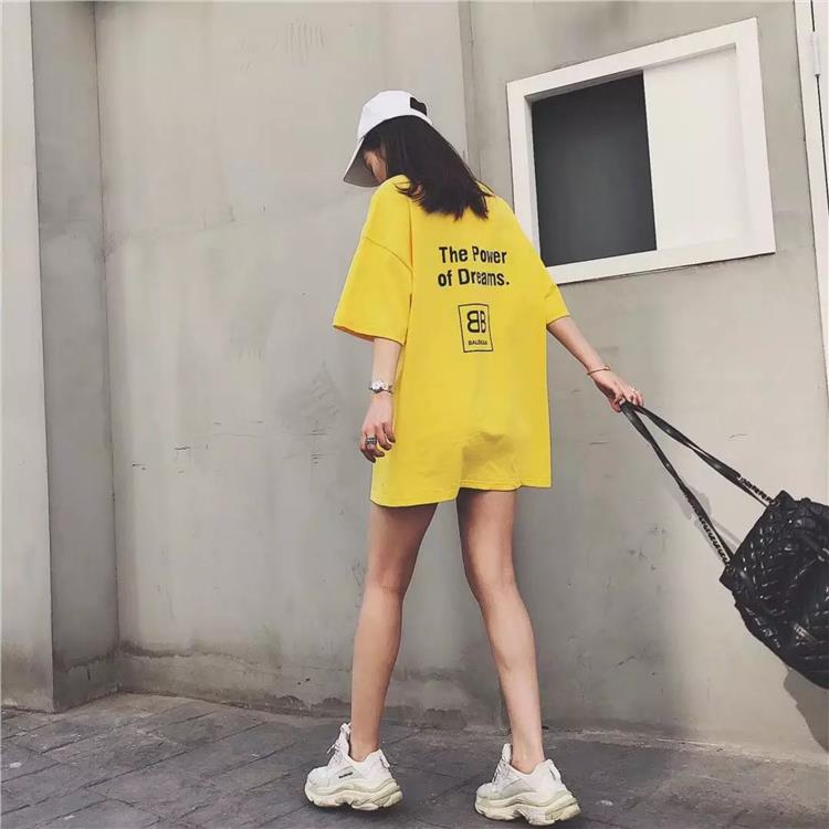 服饰箱包、运动户外 > 夹克 > 2018新款韩版半袖女b家T恤双B印花休闲宽松女女纯色短袖T恤中长款
