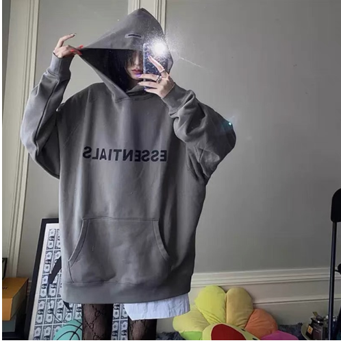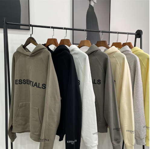 21款FOG ESSENTIALS黑标新款连帽加绒卫衣男女秋冬款宽松潮牌帽衫,面料采用488G抓绒料子,正面为纯棉面料经过精梳蚀毛以及洗水处理。反面采用20%涤棉面料进行复合加工而成,成品特点在于厚实保暖有着非常好的质感。版型立体的同时经过洗水后又保证了上身的舒适度。后背采用硅胶印花独特的美感是其他印花方式和同行难以匹敌的,以面料为底版,经过高温热转印制作出来的立体硅胶印花质感强烈,图案表面光泽亮丽!内里用色薄绒设计,贴身舒适保暖。帽子处黑色领标采用了硅胶材质,质感十足。反面的走线整齐有序,一看就是狠货,必入百搭款。上身非常炸街!