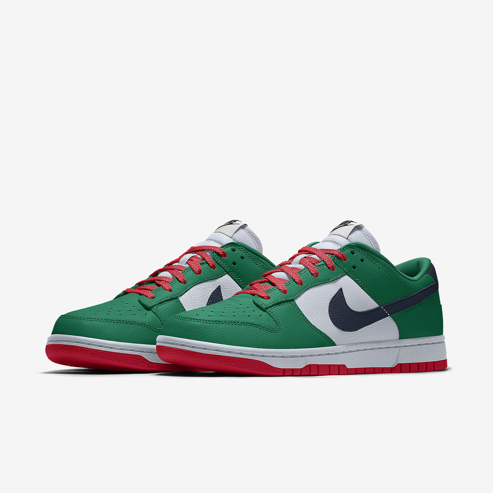 Nike Dunk Low By You 专属定制运动鞋焕新演绎经典运动鞋款风范。有多种优质皮革可供选择,包括篮球荔枝皮,以及灵感源自 Dunk 经典系列的翻毛皮。以经典学院风配色为基调,致敬篮球历史。 该产品为定制商品,订单提交 30 分钟后将无法取消。Nike By You定制商品不适用无理由退换货政策。